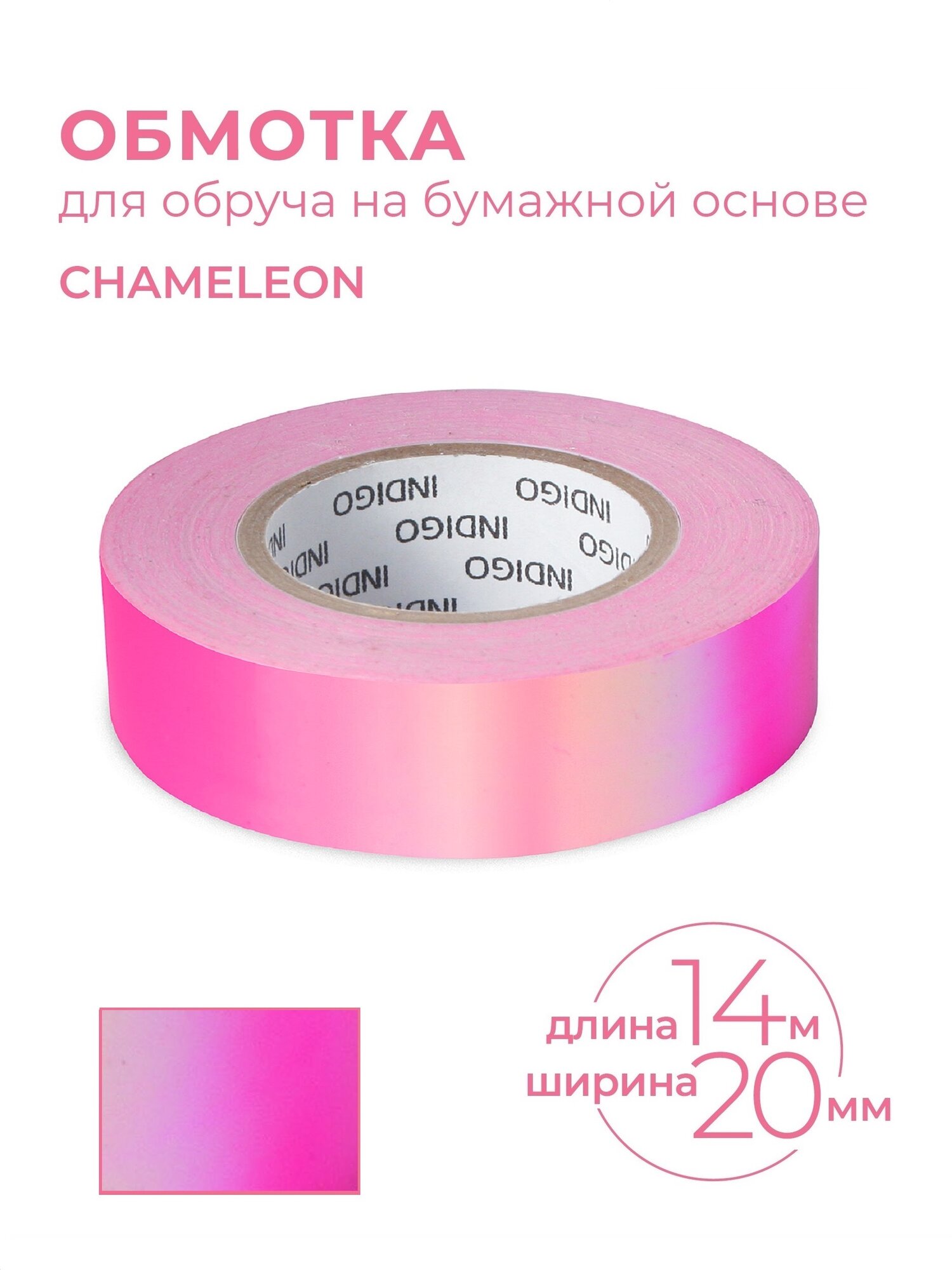 Обмотка для гимнастического обруча INDIGO Сhameleon, IN137-PN, 20мм*14м, зеркальная, на подкладке, розовый