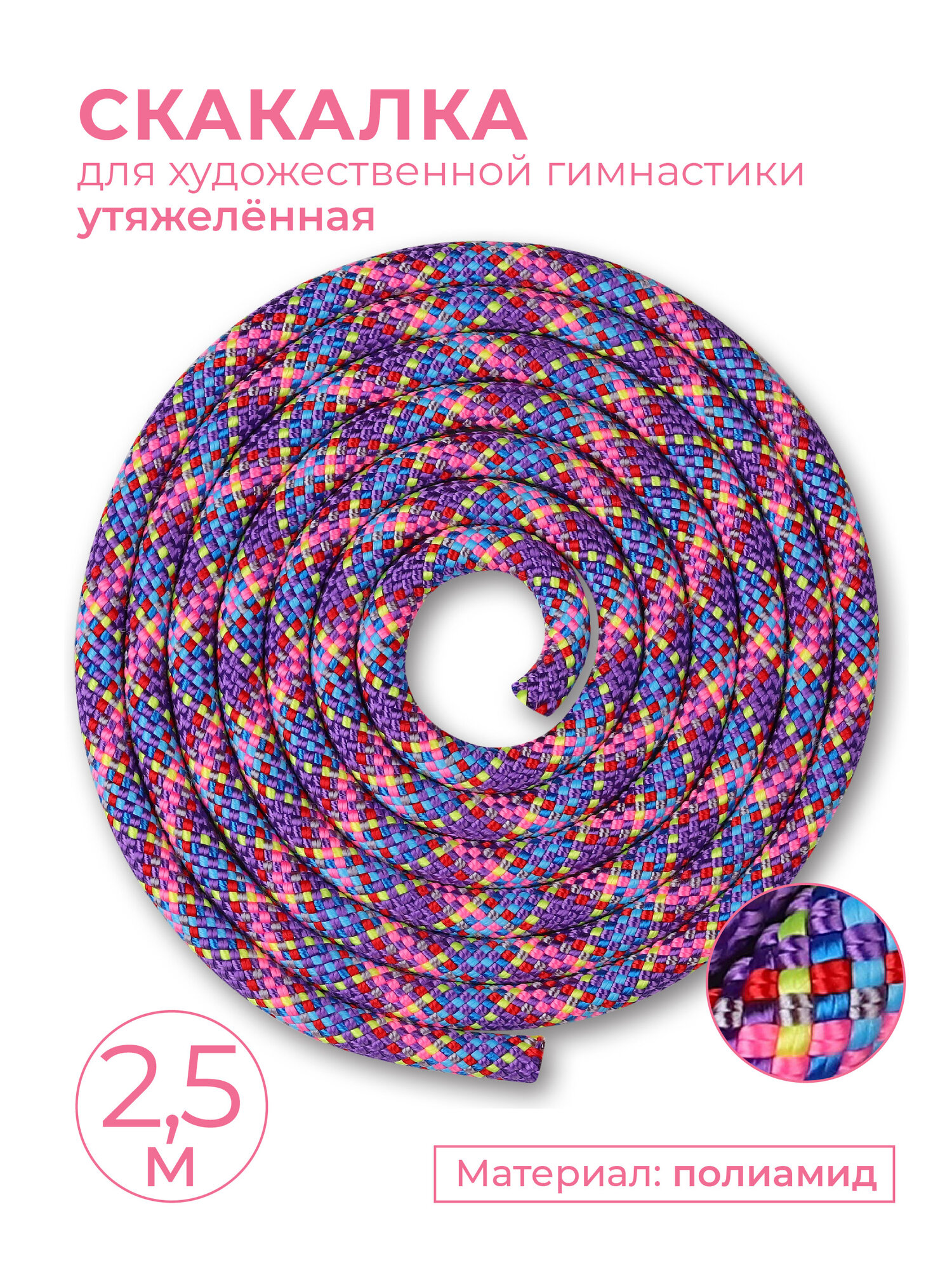 Скакалка для художественной гимнастики Утяжеленная 150 г INDIGO Мультицвет №5 SM-359 Розово-зелено-желто-красно-фиолетово-голубо-синий 2,5 м