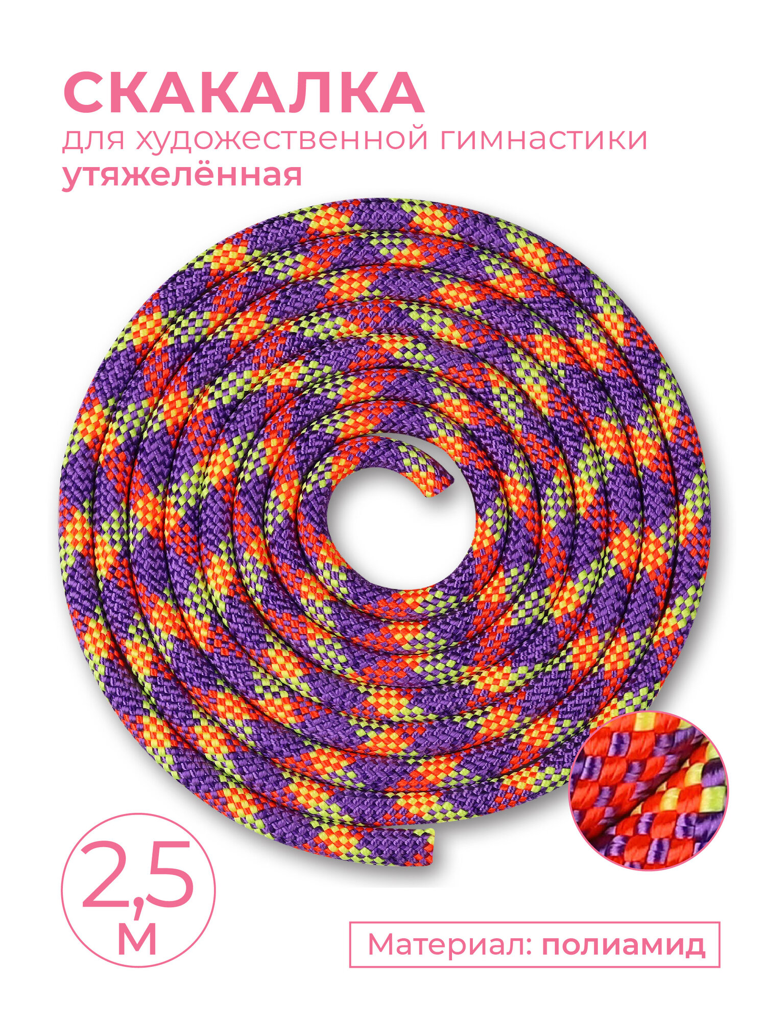 Купить Скакалка для художественной гимнастики Утяжеленная 150 г INDIGO Мультицвет №1 SM-359 Фиолетово-кораллово-лимонный 2,5 м