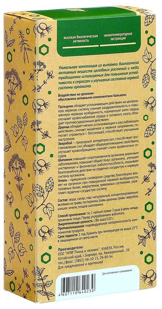 Бальзам медовый Антитоник 250мл безалкогольный. Успокаивающий интересное: