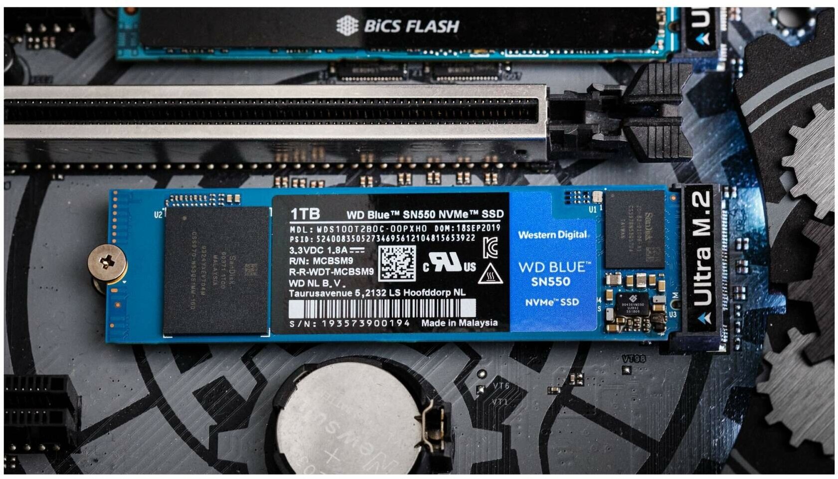 Твердотельный накопитель SSD WD Blue SN550 WDS100T2B0C 1ТБ M2.2280 NVMe PCIe Gen3 8Gb/s