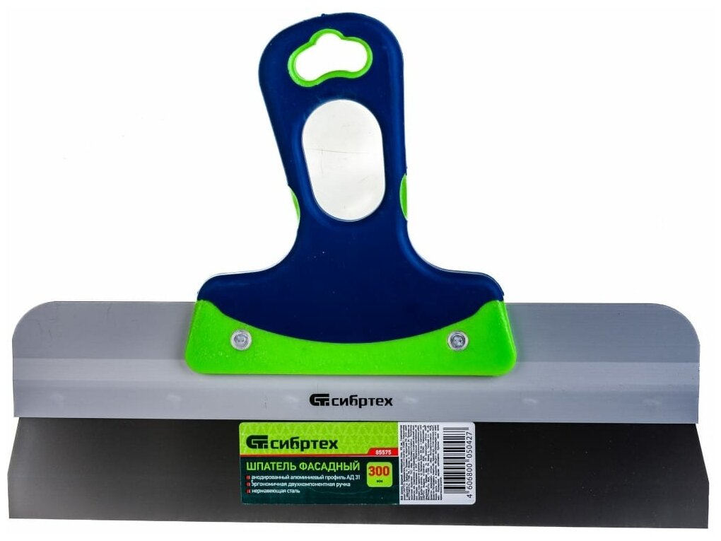 Шпатель фасадный"Сибртех" 85575, нержавеющая сталь, двухкомпонентная ручка, 300 мм Сибртех 5617754 .