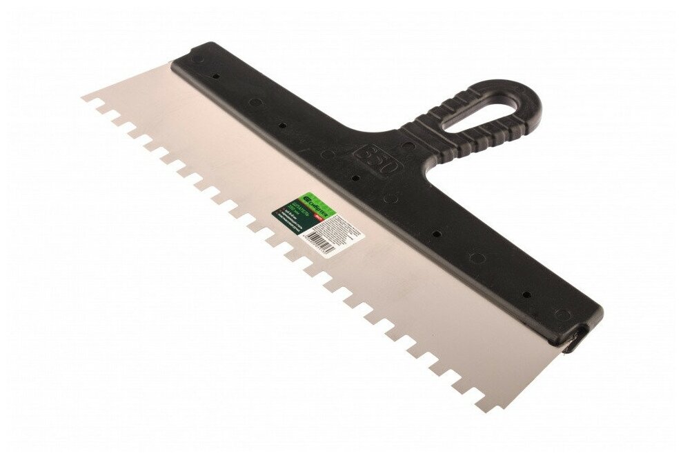 Шпатель из нержавеющей стали, 350 мм, зуб 8х8 мм, пластмассовая ручка СибрТех [85477]