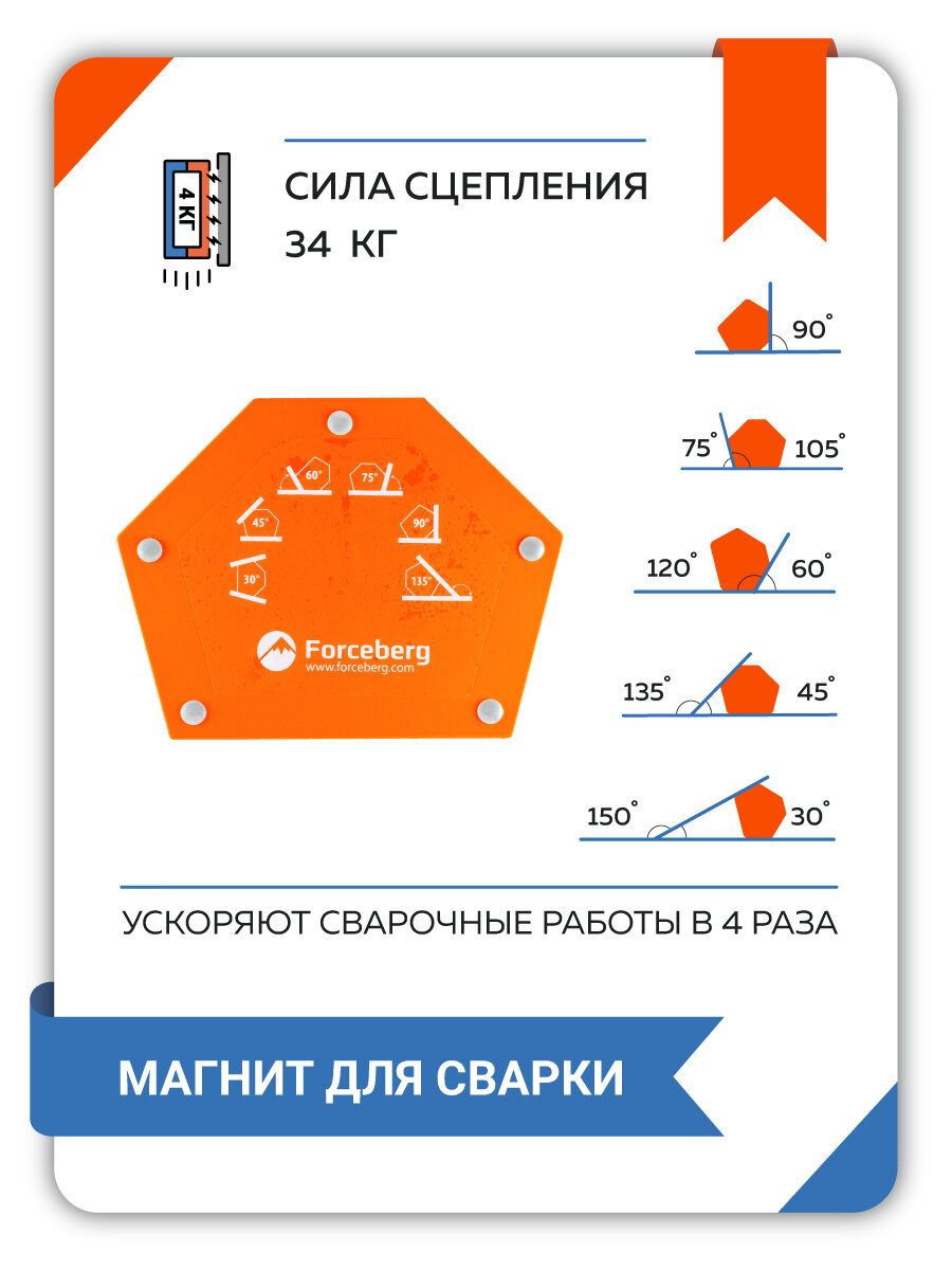 Магнитный держатель для сварки для 6-ти углов. Максимальное усилие 34 кг, Forceberg интересное: