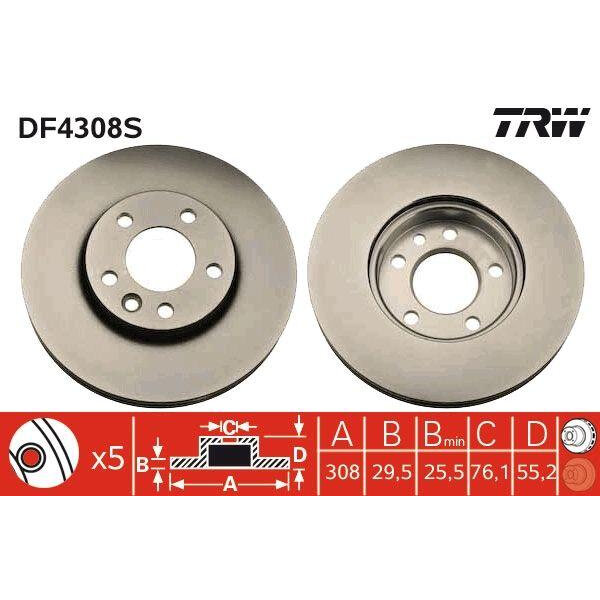 TRW DF4308S Торм.диск пер.вент.[308x30] 5 отв. 1шт