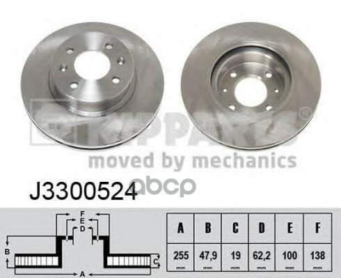 NIPPARTS J3300524 Торм.диск пер.вент.[255x19] 4 отв. 2шт