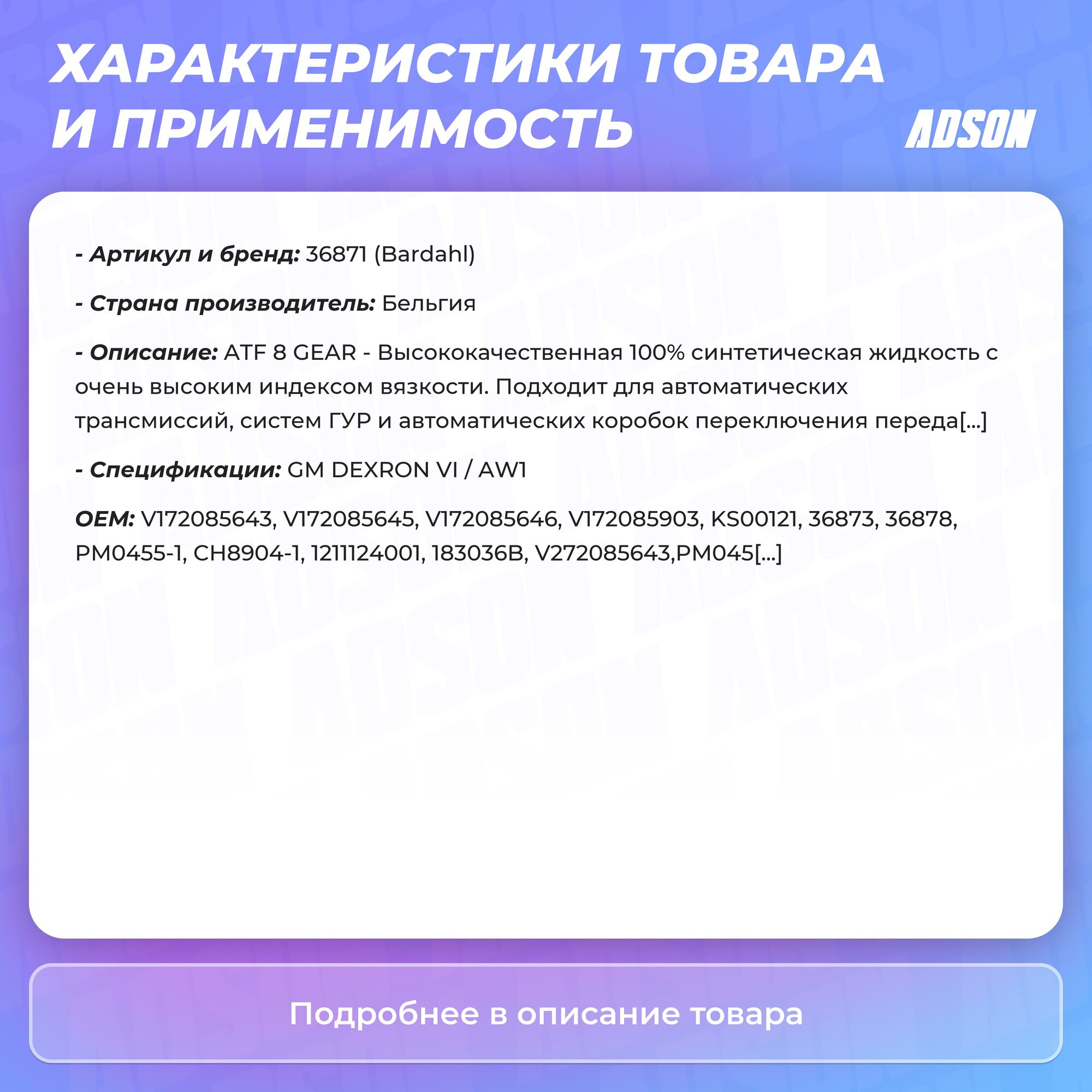 Масло Трансмиссионное Bardahl Atf 8g Синтетическое 1 Л 36871 Bardahl арт. 36871