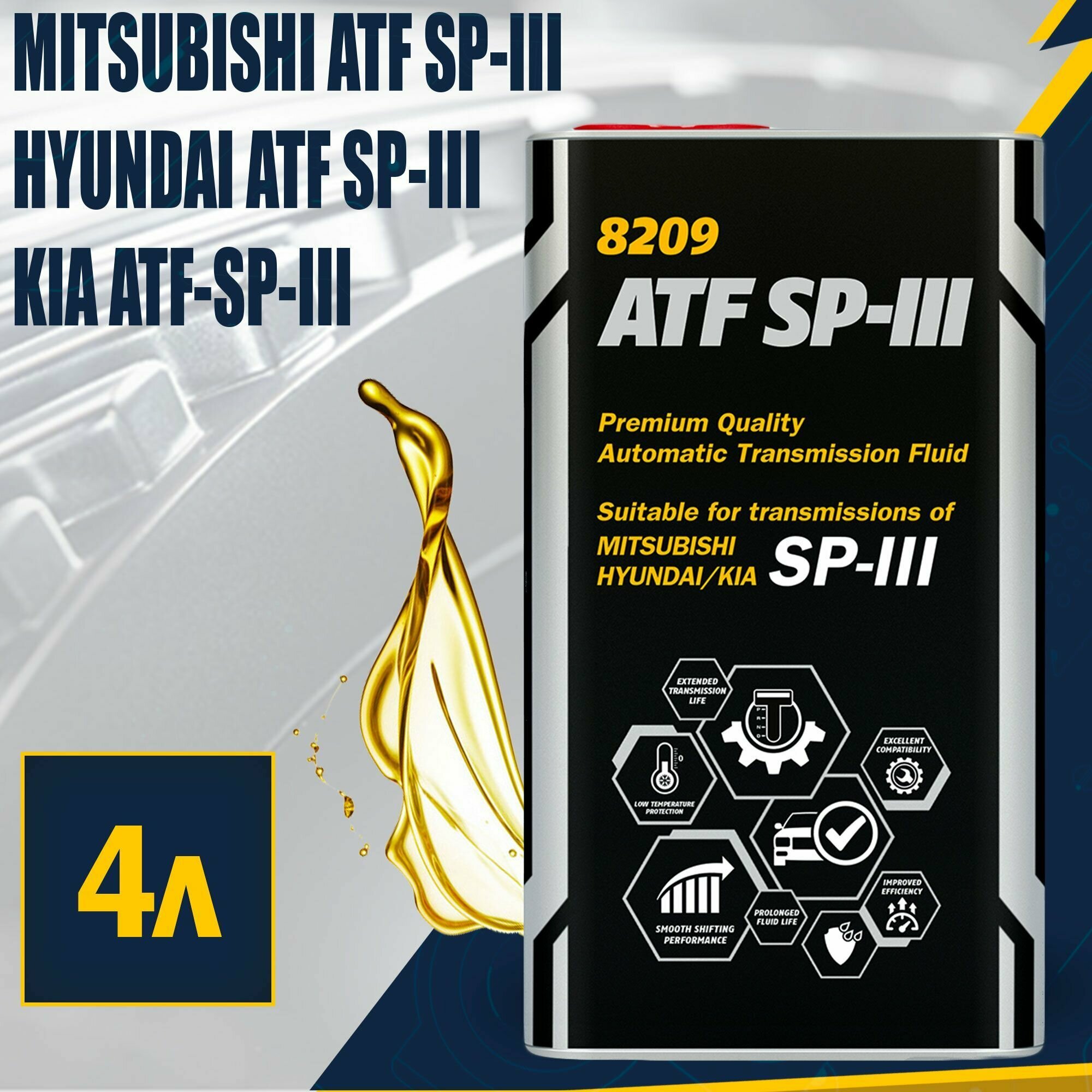 MANNOL 8209 O.E.M. for Hyundai Kia Mitsubishi ATF SP-III (4л.) Синт. трансм. масло METAL