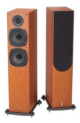 Звучание сквозит камерностью. Оркестр, ударные, вокал, фортепиано – все идеально точно и, не побоюсь этого слова, академично. Хороший басовый диапазон. Электронные жанры - не их конёк. Внешний вид у колонок стильный, но сдержанный, можно назвать его аристократическим. Собраны без нареканий. Отделка – шпон. Терминал с позолоченными контактами и винтовыми зажимами под большие сечения, Bi-amping/bi-wiring. Массивные ножки с регулировками. Интересное конструкционное решение. Как такового фазоинвертора нет, снизу большое круглое отверстие (через которое видно прилично задемпфированое внутреннее пространство). Снизу отверстие закрывается деревянной подставкой, при этом остаётся щель в несколько мм (то есть некий гибрид фазоинверторной и щелевой системы). Работают в составе стереосистемы с усилителем Marantz и сетвым проигрывателем Denon. |