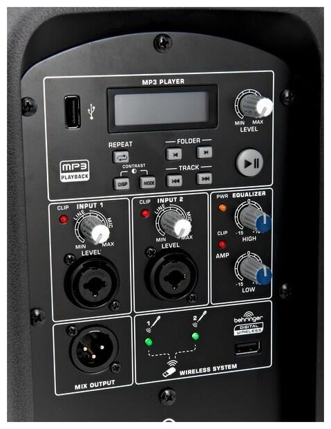 Купить BEHRINGER B112MP3 универсальная активная 2-полосная акустическая система, 12'', 1000 Вт, микшер, MP3, порт радиосистем