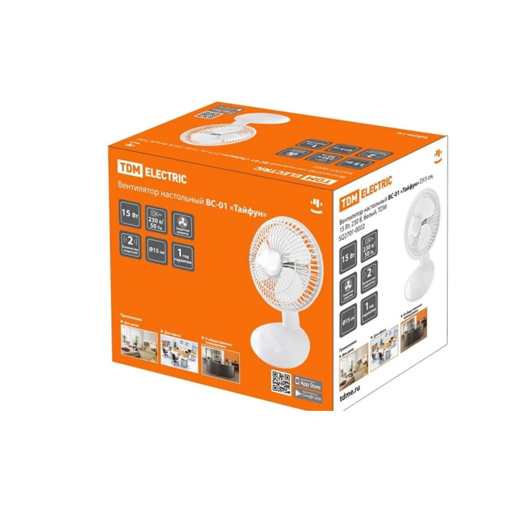 TDM Вентиляторы и аксессуары SQ2701-0002 Вентилятор настольный ВС-01 "Тайфун" D15 см, 15 Вт, 230 В, белый,