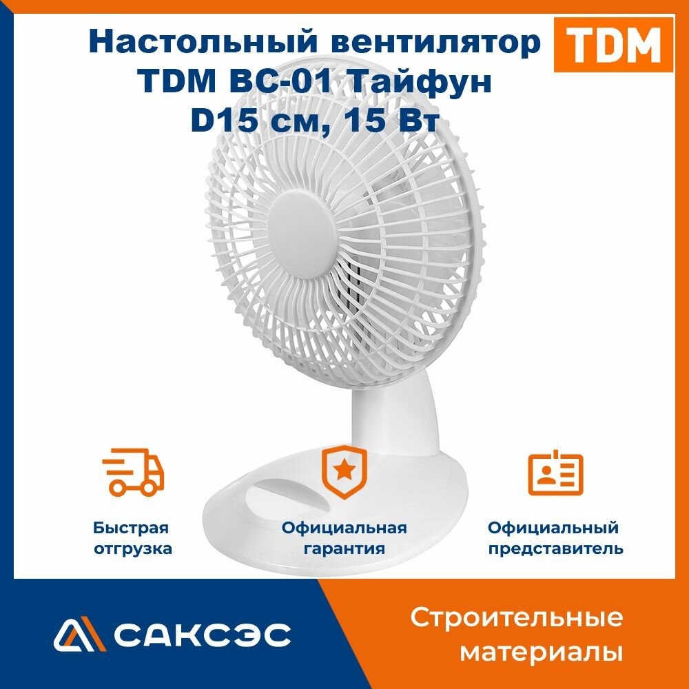 Настольный вентилятор Tdm Electric ВС-01 "Тайфун" D15 см, 15 Вт, 230 В, белый (SQ2701-0002)