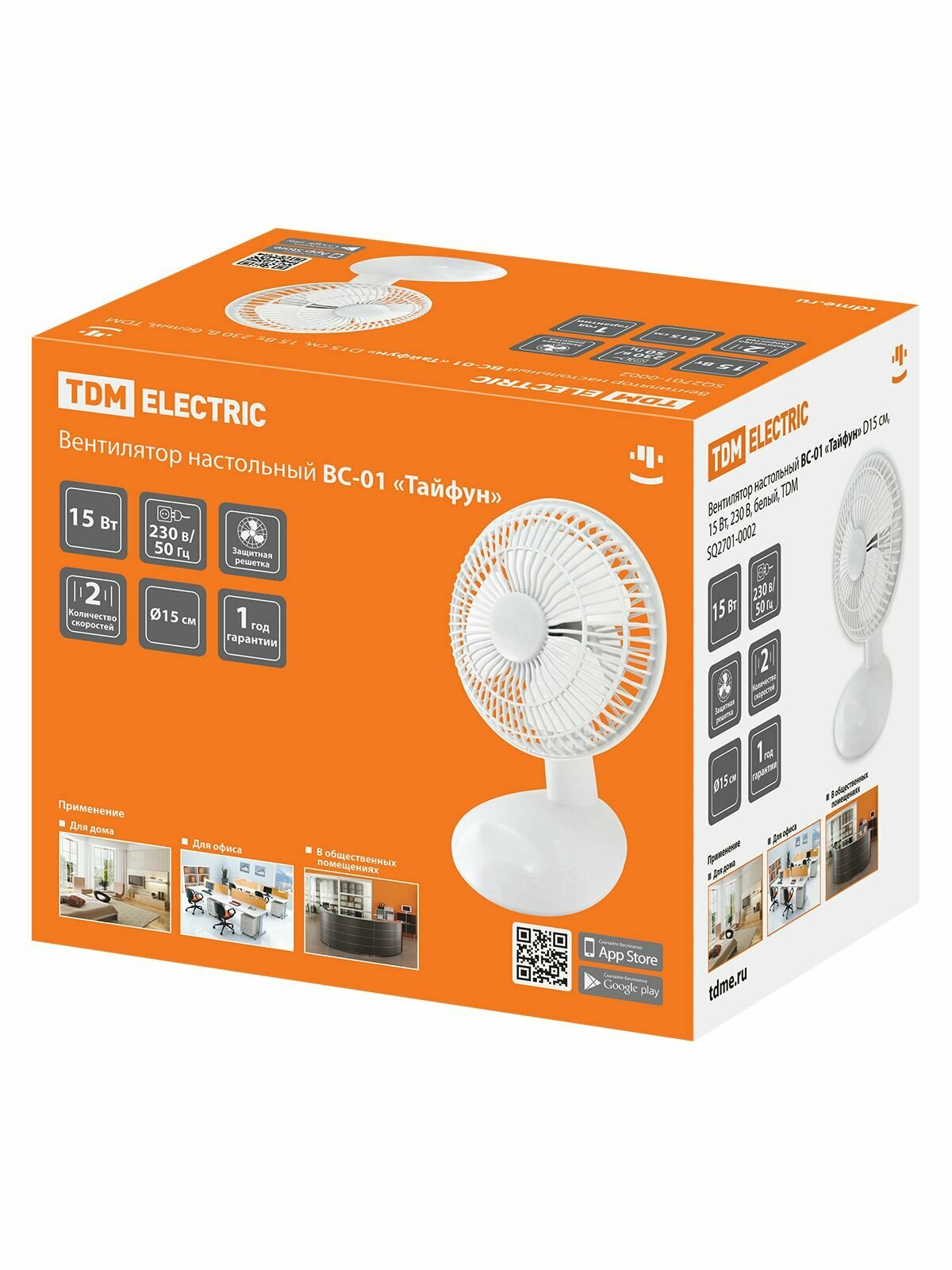 TDM SQ2701-0003 Вентилятор настольный ВС-01 "Тайфун" D15 см, 15 Вт, 230 В, черный, .