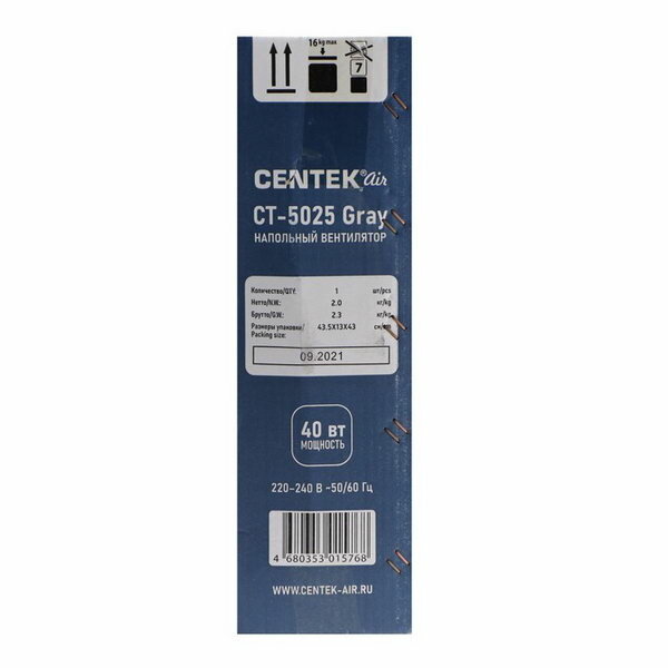 Напольный вентилятор Centek z. 40Вт, 1.25м, 43см, 3 скорости, автоповорот CT-5025 Blue