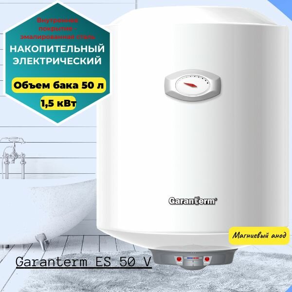 Накопительный электрический водонагреватель Garanterm ES 50V Slim, белый