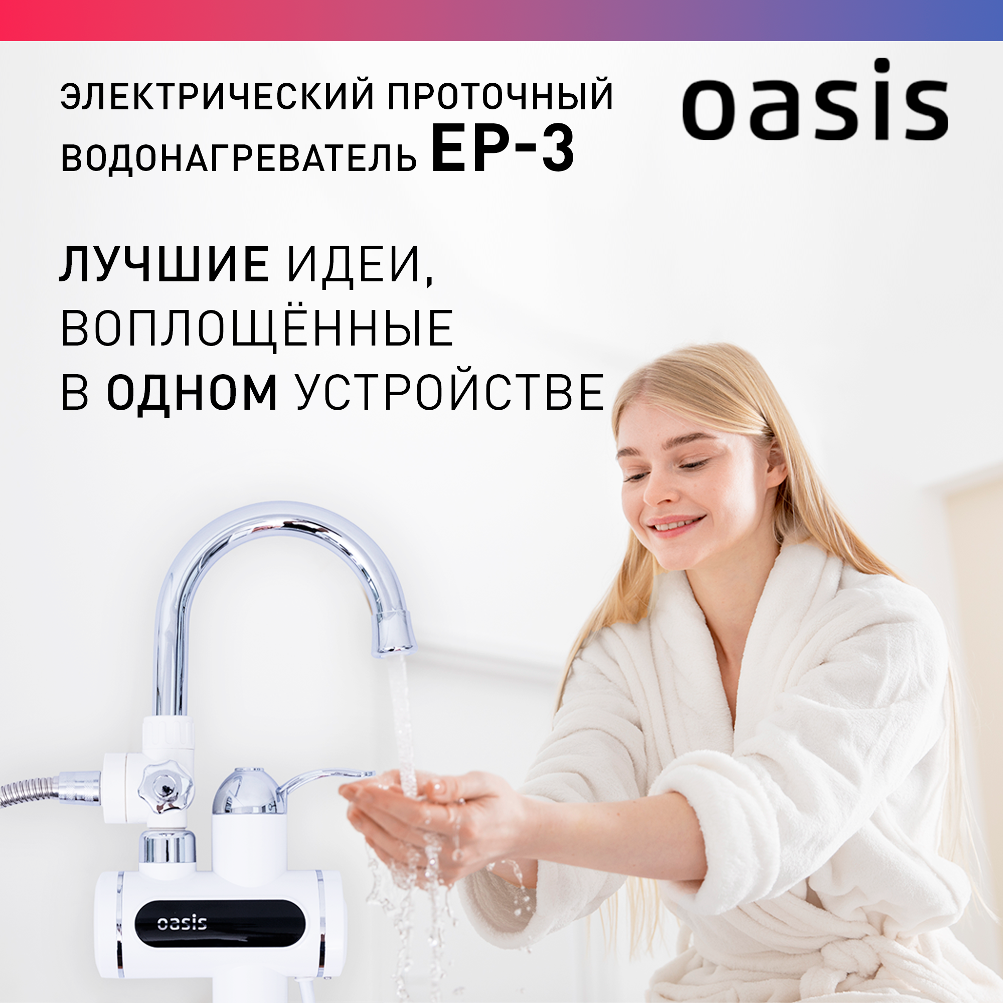 Купить Проточный электрический водонагреватель Oasis EP-3, душ+кран, белый/серебристый
