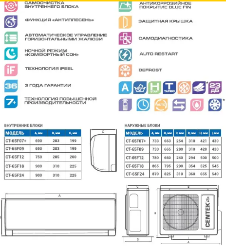 Ниже Вы можете прочитать отзывы на Сплит-система Centek CT-65F07+, ознакомится с подробными характеристиками, посмотреть интересные обзоры и фотографии на Сплит-система Centek CT-65F07+.
