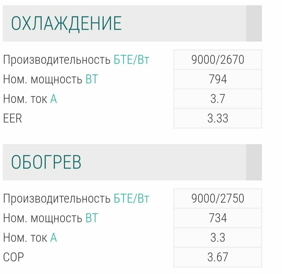 | Потребляемая мощность при охлаждении | 794 Вт |
