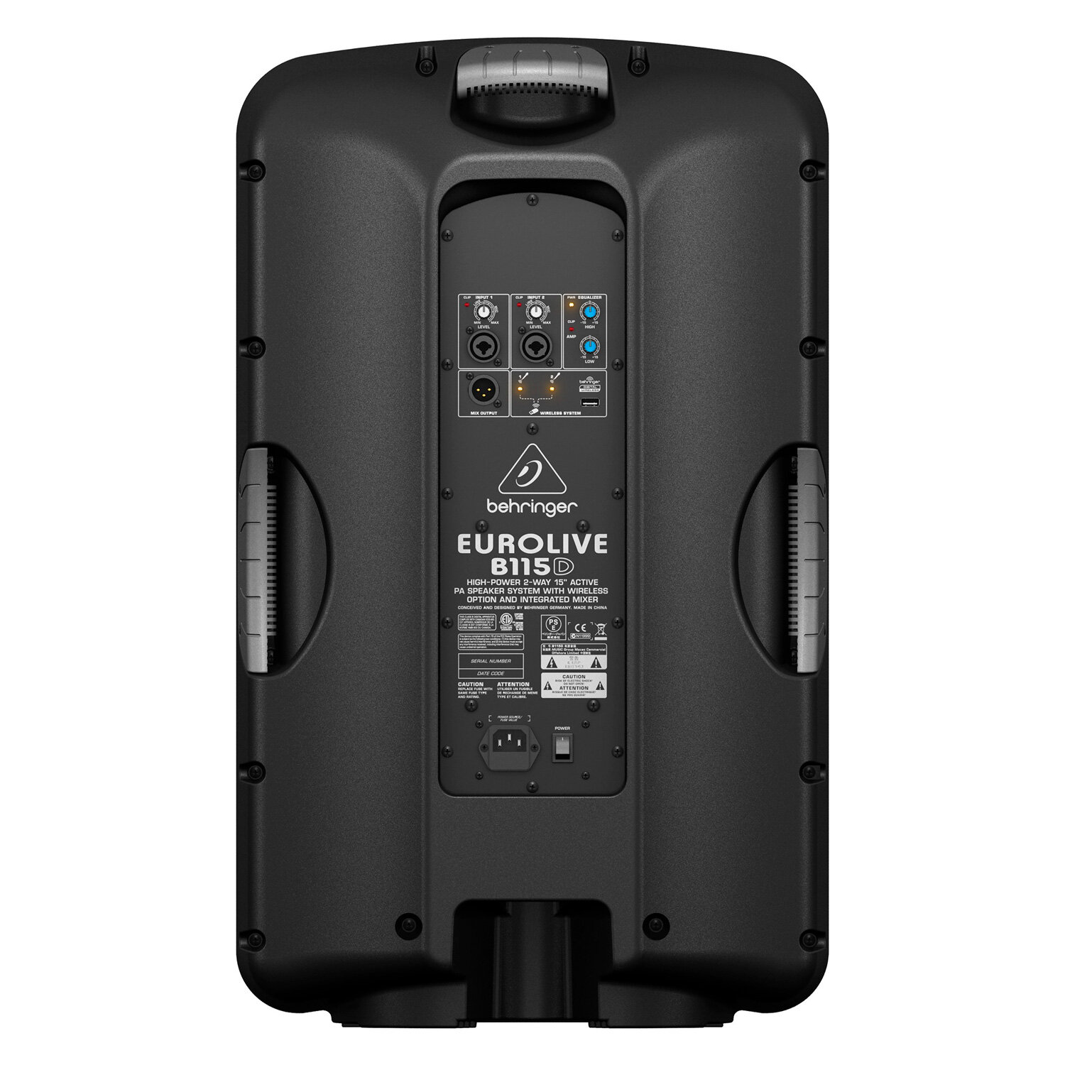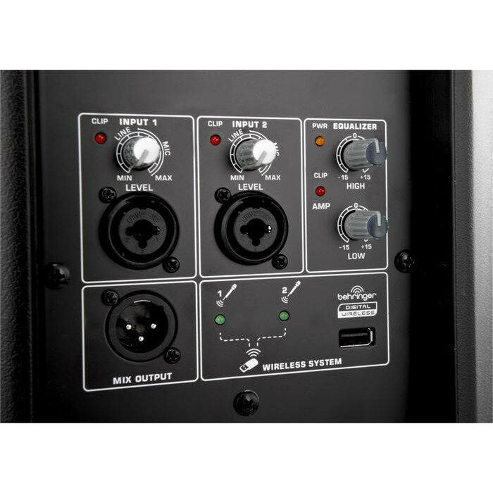 BEHRINGER B115D активная 2-х полосная (15' + 1,35') акустическая система 1000 Вт, 2 порта для радиомикрофонов, 2-канальн. микшер