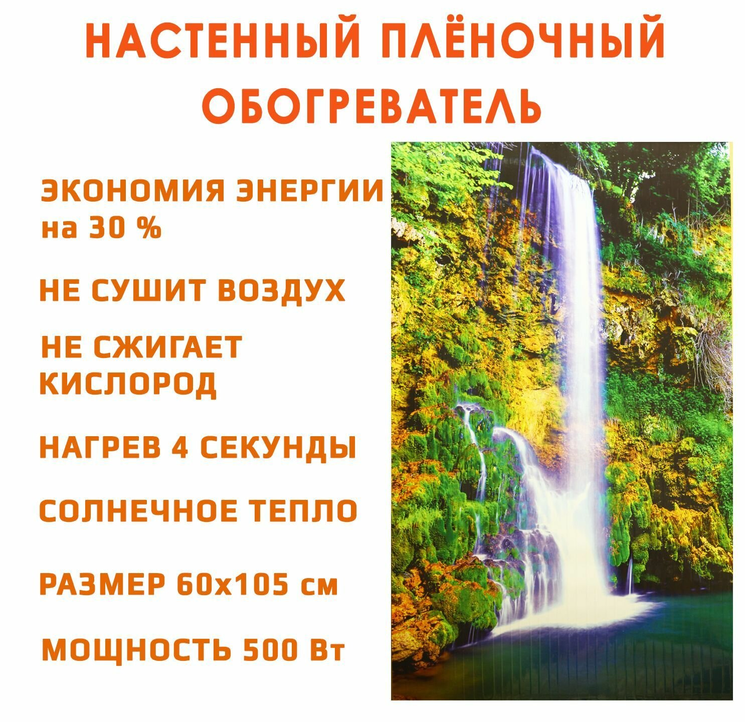 Электрический доброе тепло обогреватель гибкий настенный инфракрасный, рисунок Водопад, 500Вт