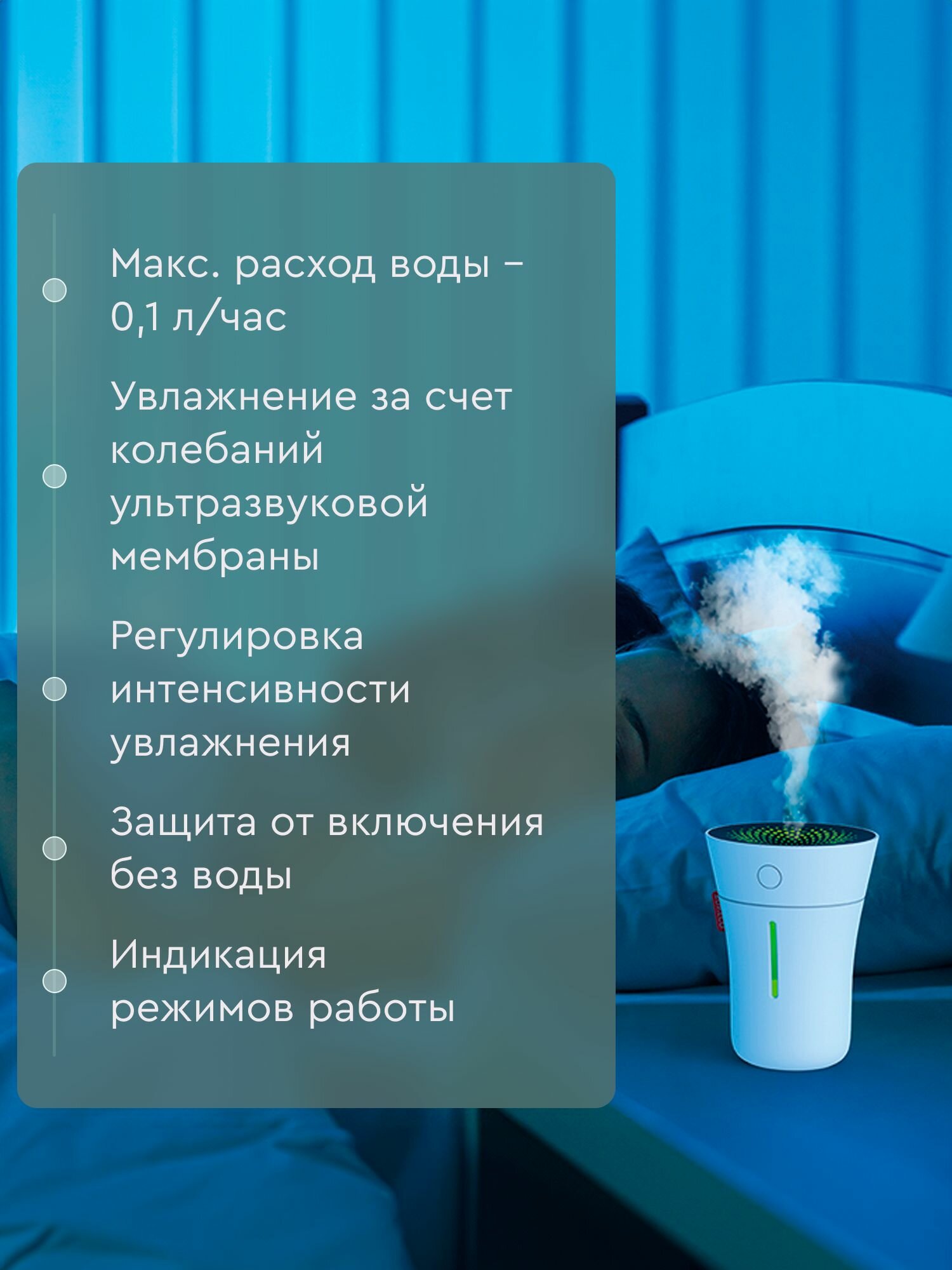 | Плюсы: | Компактный, подсветка, увлажняет воздух в рамках рабочего места |