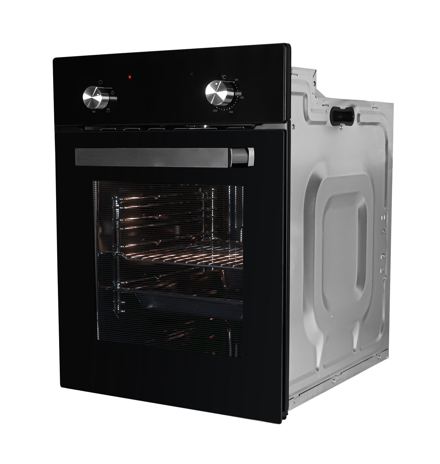 Духовой шкаф EX EDM 4540 IX, встраиваемый, механические ручки, объем 58 л, 4 функции (традиционный, нижний нагрев, верхний нагрев, подсветка), двойное остекление дверцы, традиционная очистка, хромированные направляющие.