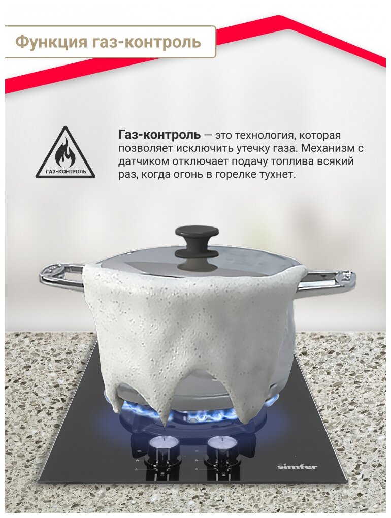 Газовая варочная панель Simfer H30N20B516, с газ-контролем, чугунные решетки, автоподжиг