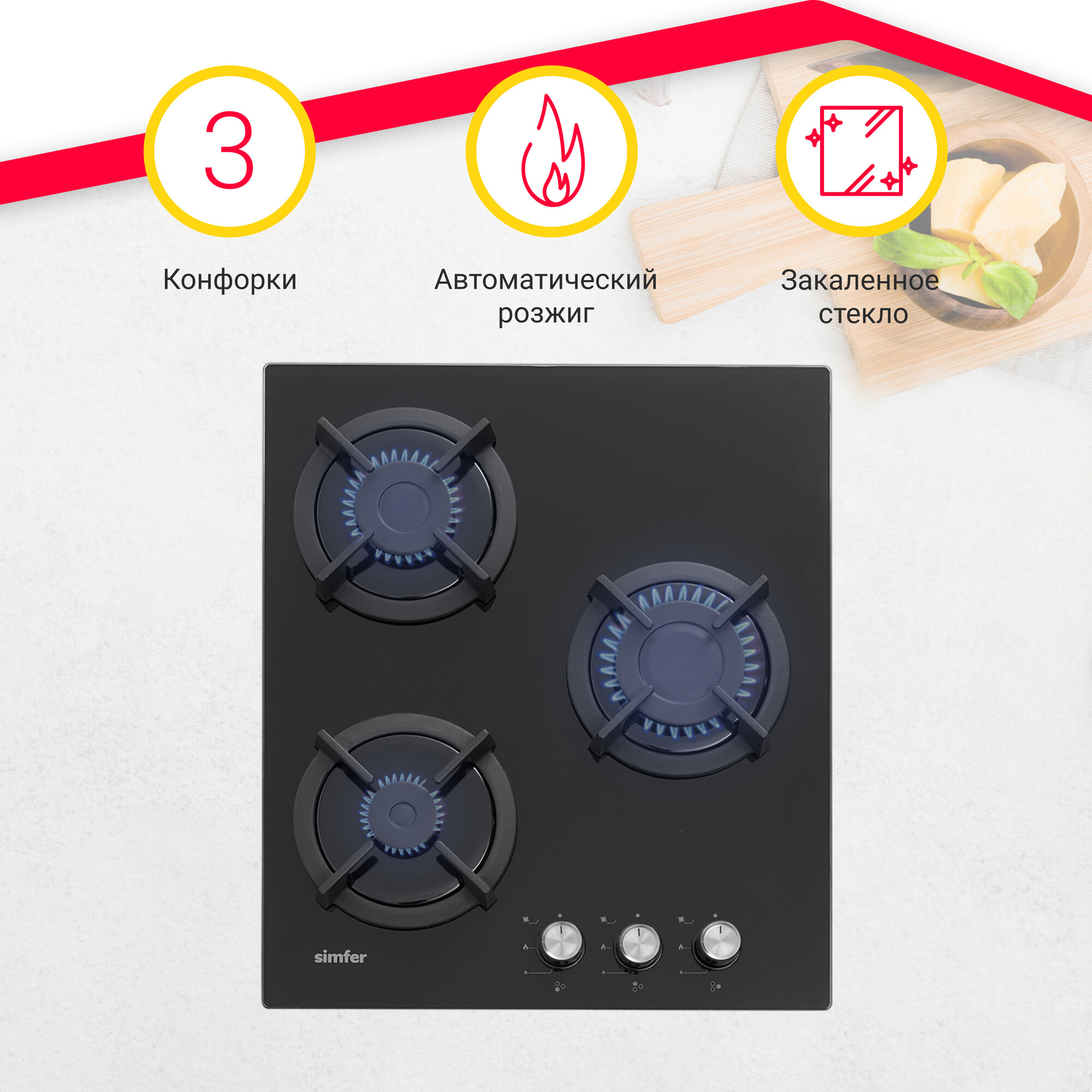 Газовая варочная панель Simfer H45N30B416, газ на стекле, автоподжиг