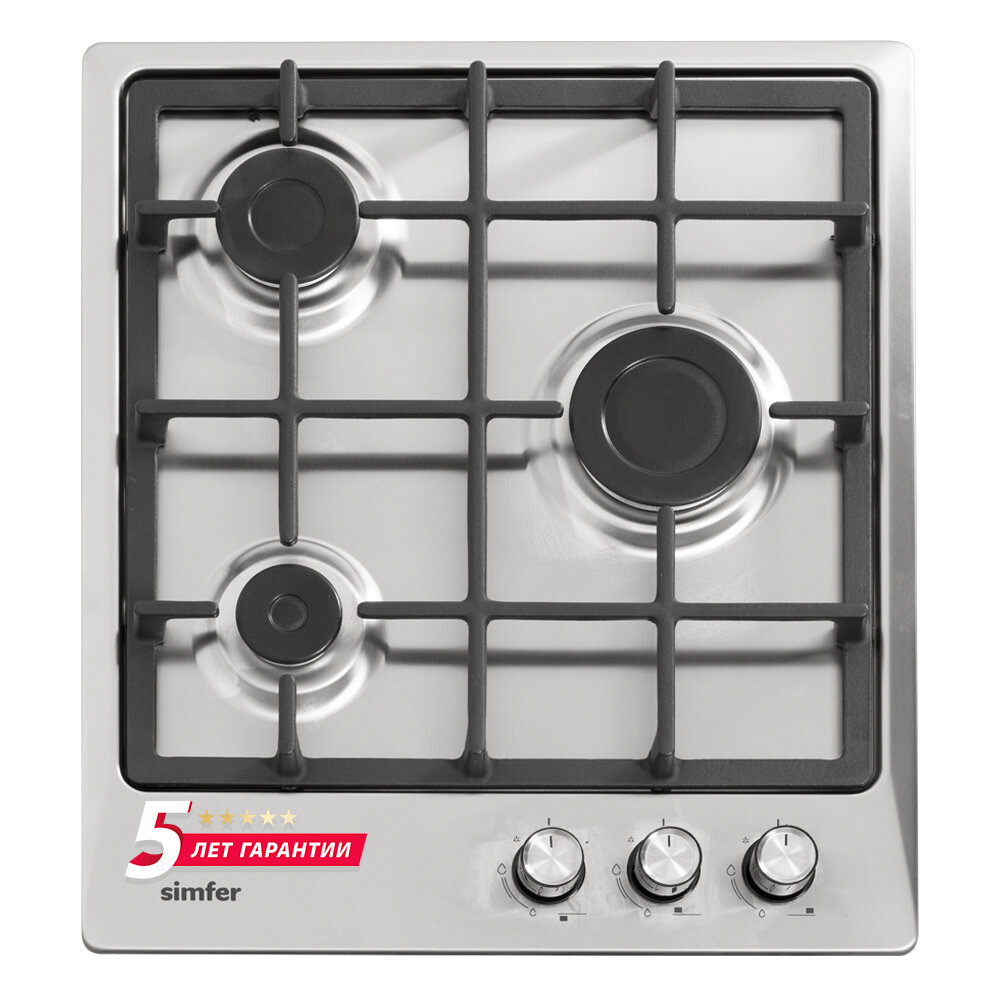 Газовая варочная панель Simfer H45V30M416, независимая, нержавеющая сталь