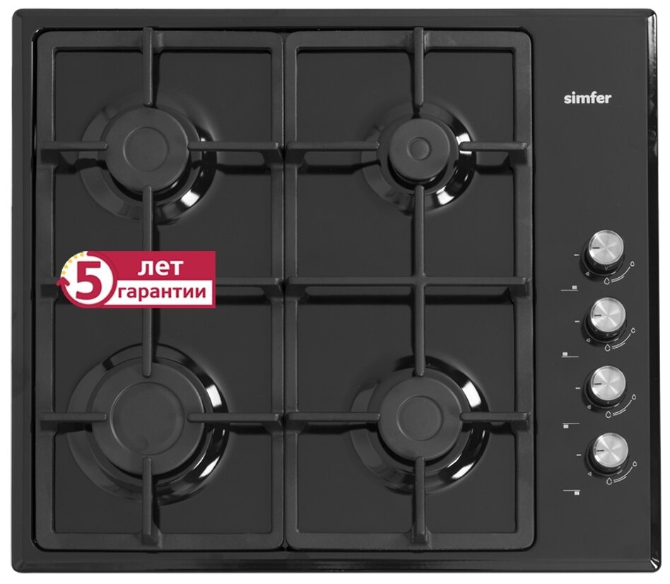 Газовая варочная панель Simfer H60Q40B416, независимая, черный