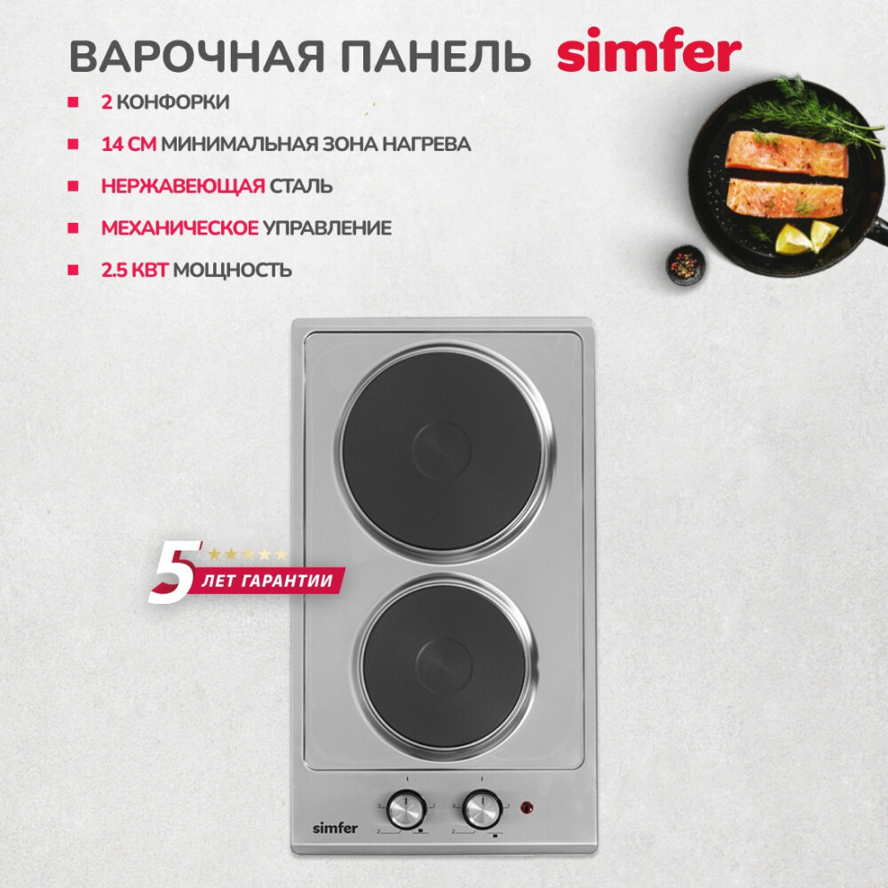 Электрическая варочная панель Simfer H30E02M016, 2 конфорки, нержавеющая сталь интересное:
