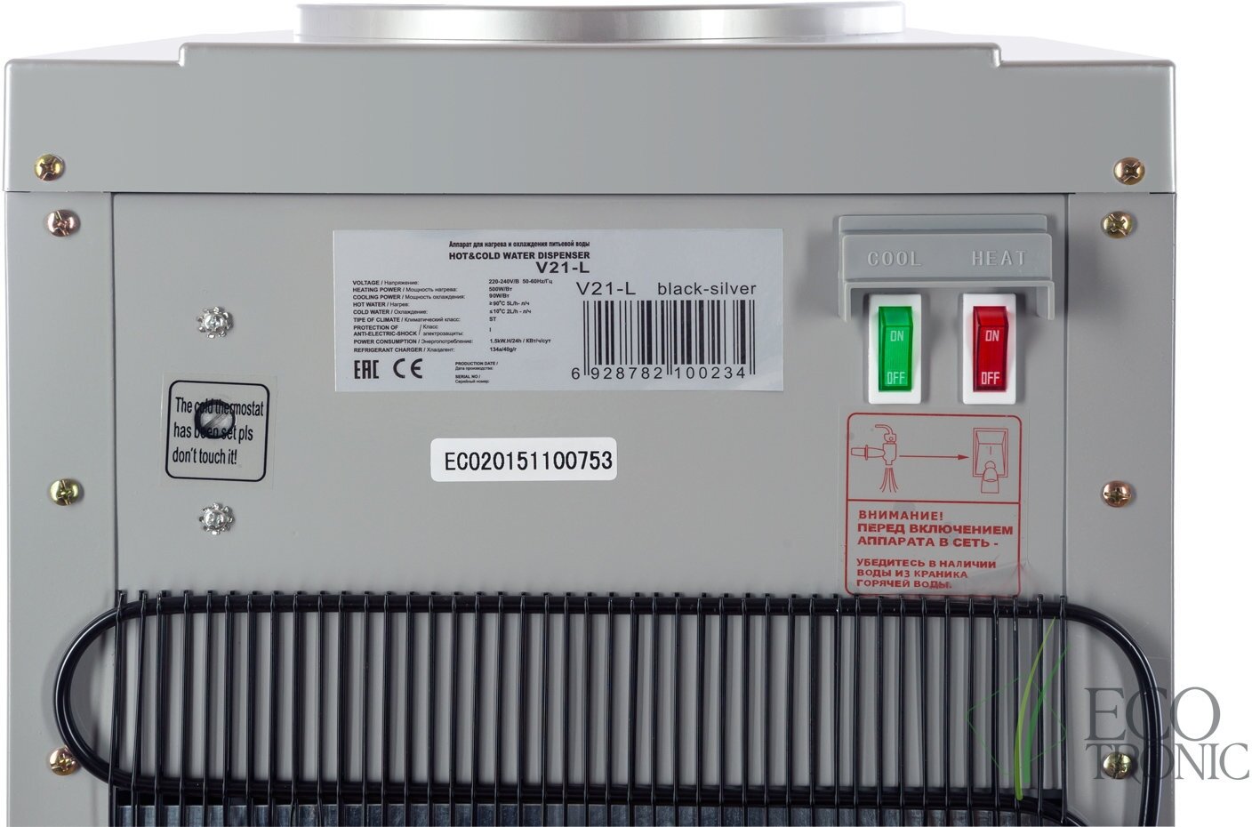 Кулер для воды Ecotronic Экочип V21-L черный/серебристый
