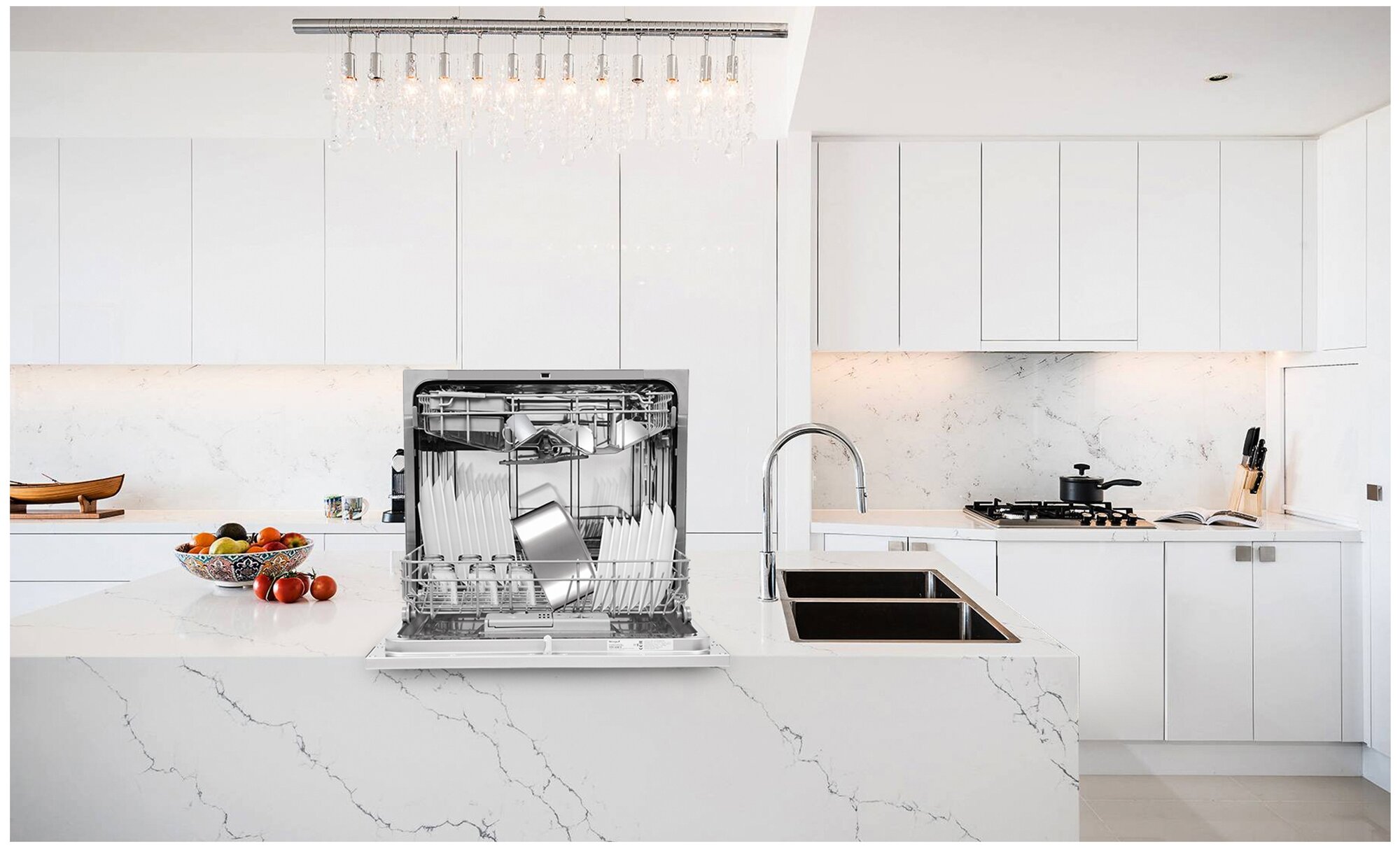 Настольная посудомоечная машина Weissgauff TDW 4006 D,З года гарантии, 8 комплектов посуды, 7 программ, Функция самоочистки, Быстрый режим 30 мин, Дисплей, Таймер, Низкий уровень шума, дозагрузка