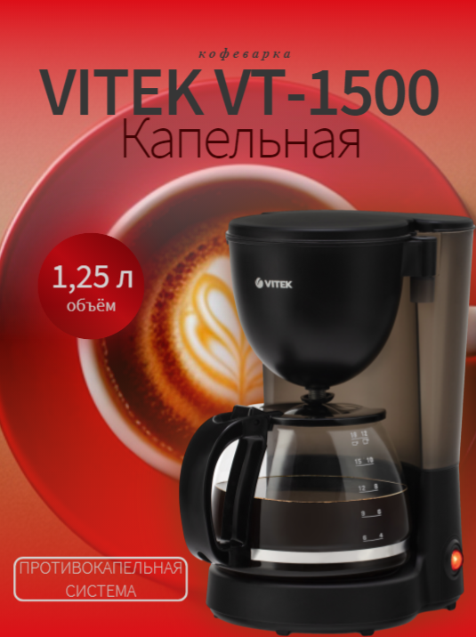 Ниже Вы можете прочитать отзывы на Кофеварка VITEK VT-1500, ознакомится с подробными характеристиками, посмотреть интересные обзоры и фотографии на Кофеварка VITEK VT-1500.