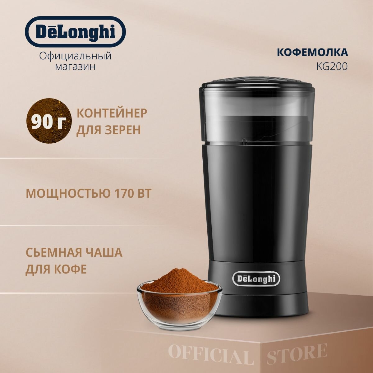 Кофемолка Delonghi KG200 170Вт сист.помол.:ротац.нож вместим.:90гр черный
