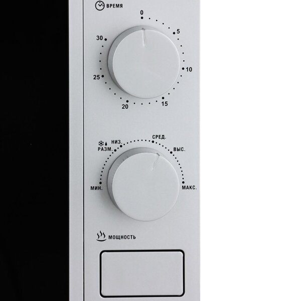 Микроволновая печь Hyundai HYM-M2001 серебристый, с механическим управлением, объем камеры 20 л, мощность 700 Вт, открывание дверцы кнопкой, функции разогрева и разморозки