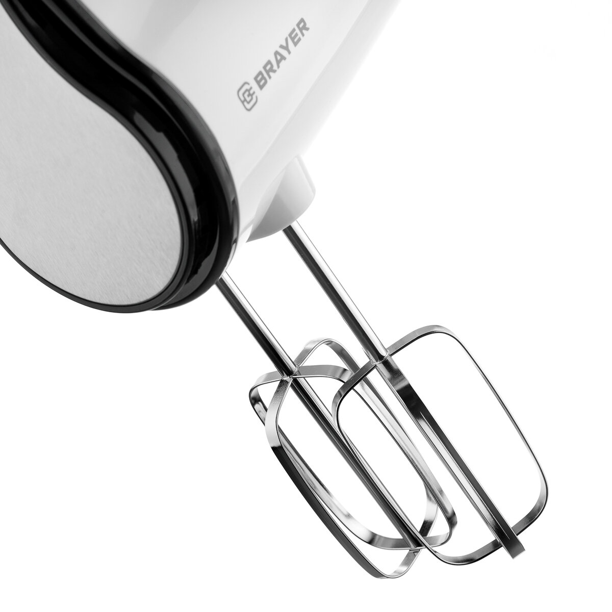 Миксер BRAYER BR1300, 350 Вт, 5 скоростей, 2 венчика, 2 крюка для теста, турборежим, белый /Квант продажи 1 ед./