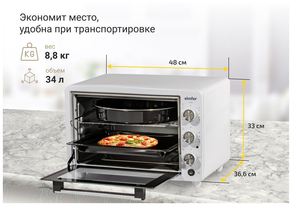 Мини-печь Simfer M3404 Albeni Comfort, 4 режима работы, с вертелом интересное: