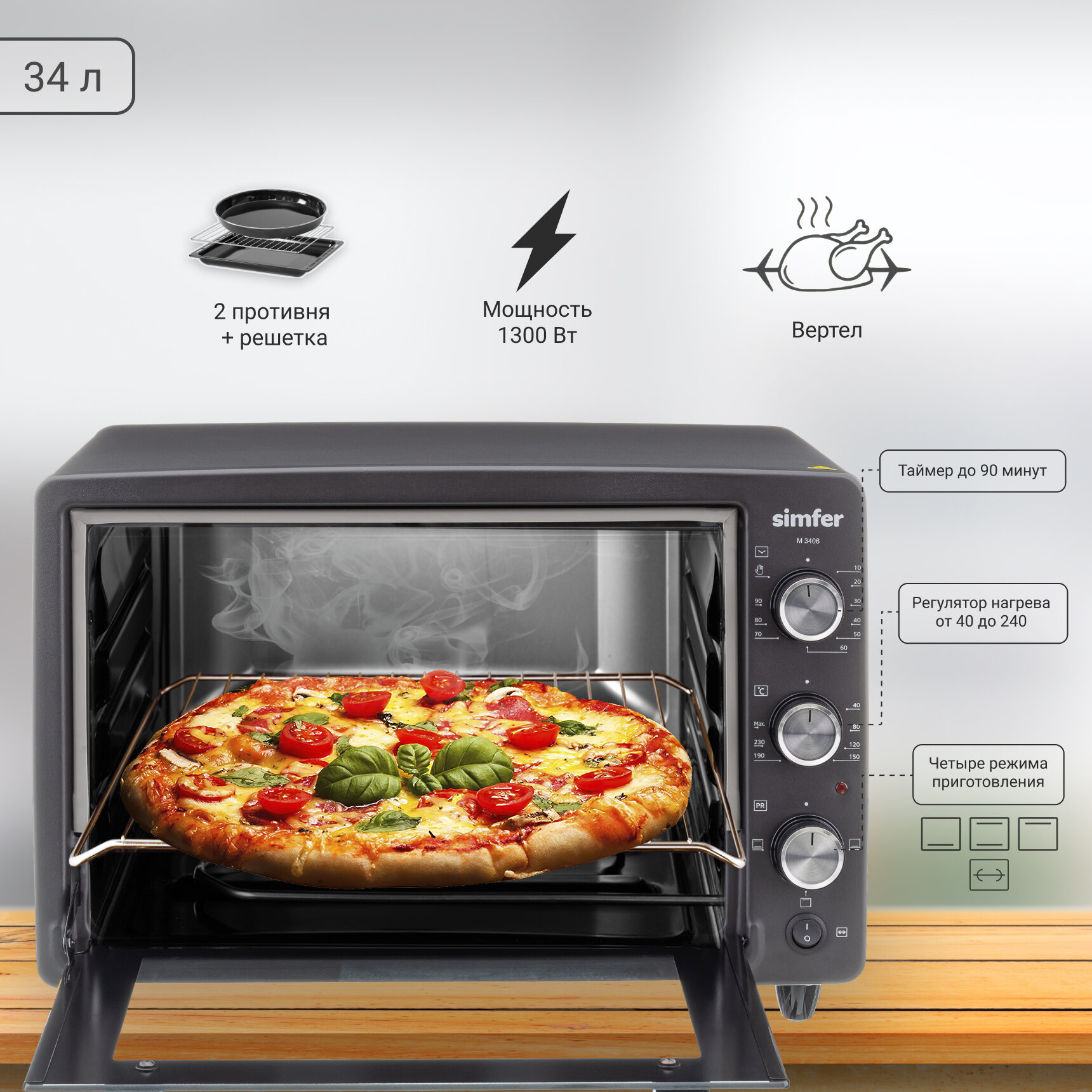 Мини-печь Simfer M3406 Albeni Comfort, 4 режима работы, с вертелом интересное: