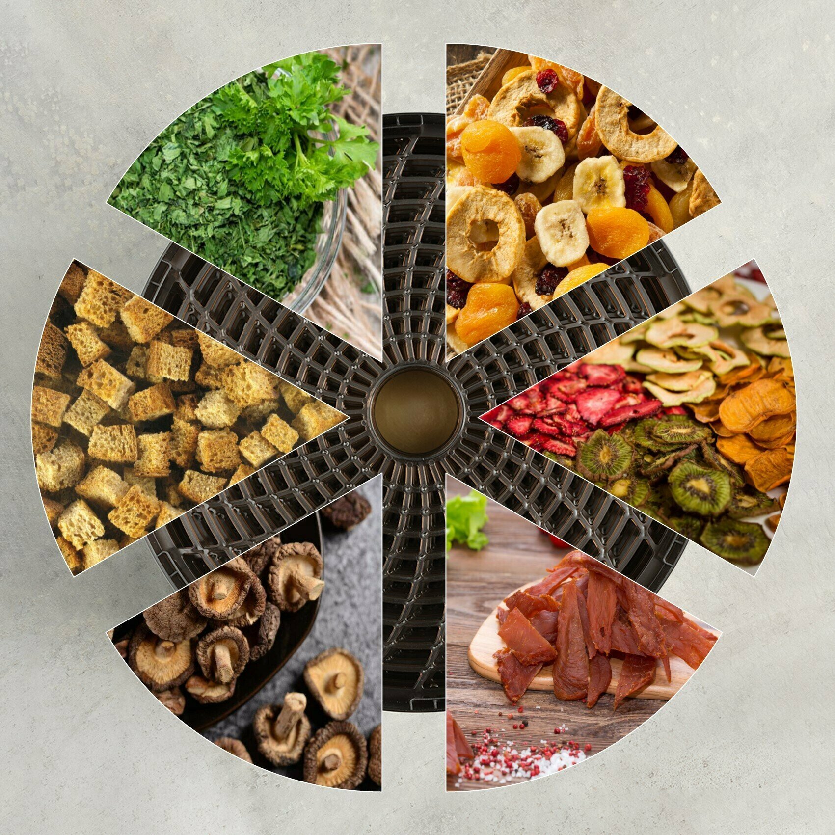 | Отзыв: | Если грамотно высушить,то все полезные вещества в продуктах можно сохранить. Большой диапазон температур от 35 до 70°, сушу всё с огорода ,своё и то, что в лесу насобираю (грибы,ягода). Она производительная, одновременно можно сушить 6 поддонов это до 3,5 кг сырого продукта. Поддоны пластиковые, мою под краном. |
