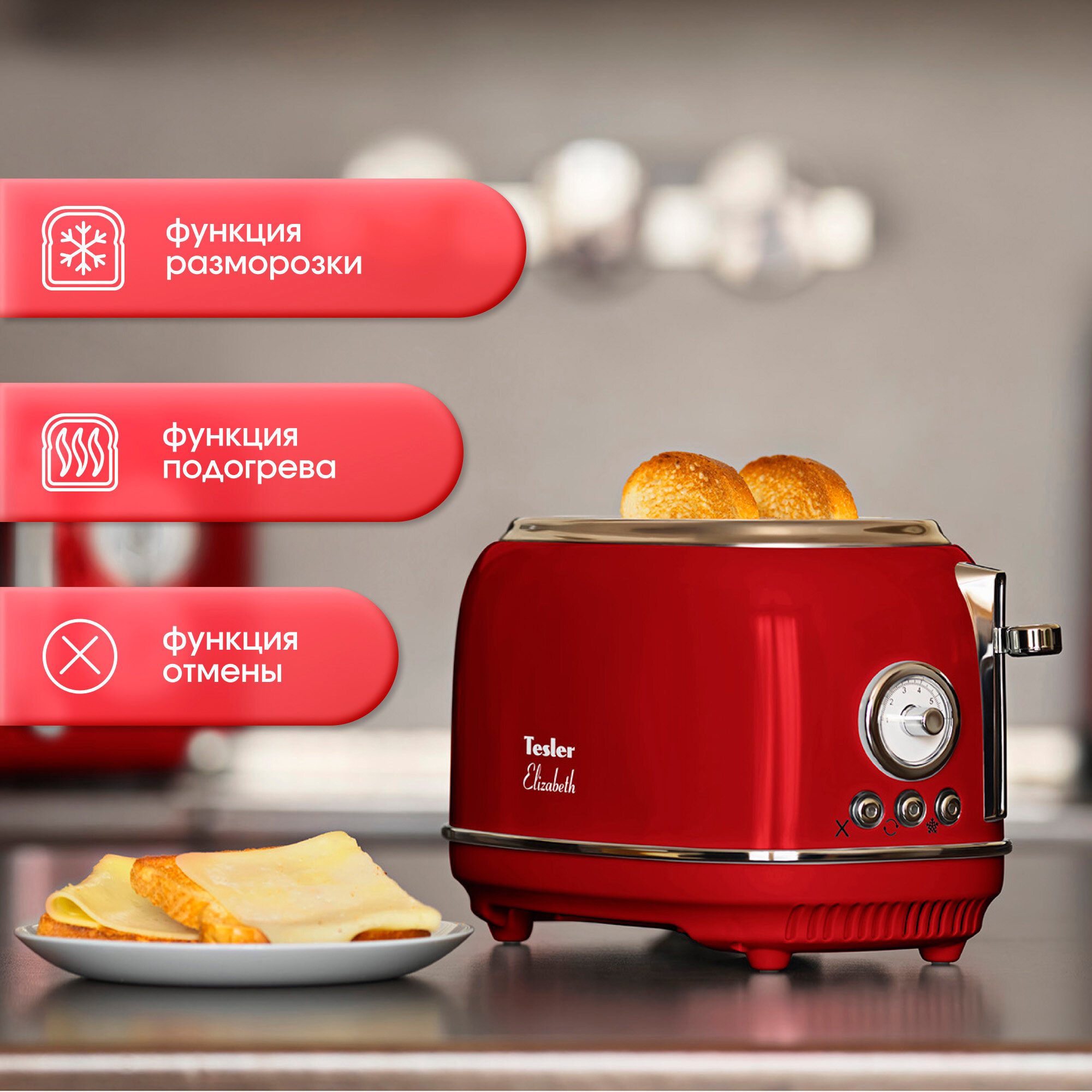 Тостер TESLER Elizabeth TT-245 красный