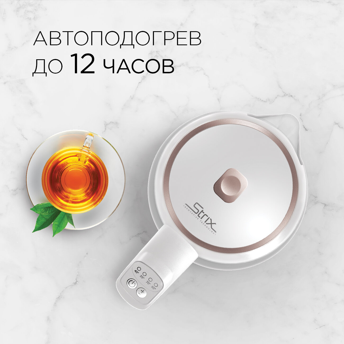 Стеклянный корпус Металлическое дно Регулировка температуры нагрева, в том числе с телефона Аккуратный внешний вид, без нагромождений |