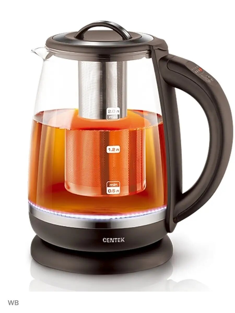 Чайник Centek CT-0017 стекло, 2.0л, 2200Вт, функция заваривания чая, внутр. LED подсветка