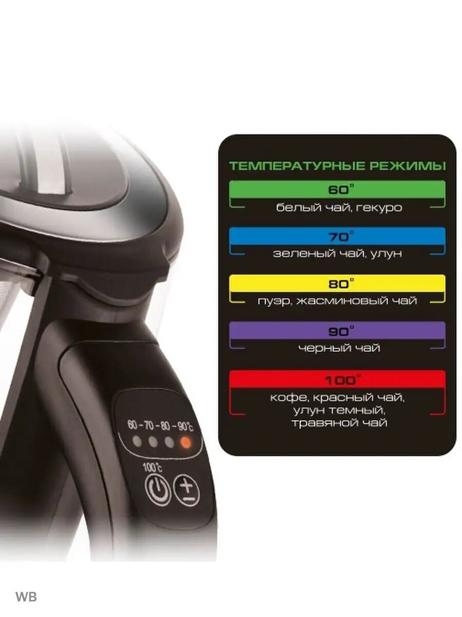 | Плюсы: | Выбор температуры, можно заварить любой чай прямо в чайнике |