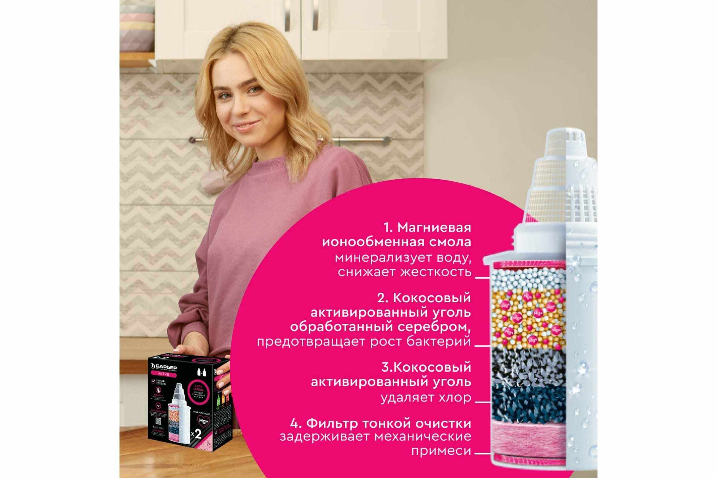 | Плюсы: | добавлен магний, недорого стоит, подходит для любого кувшина барьер |