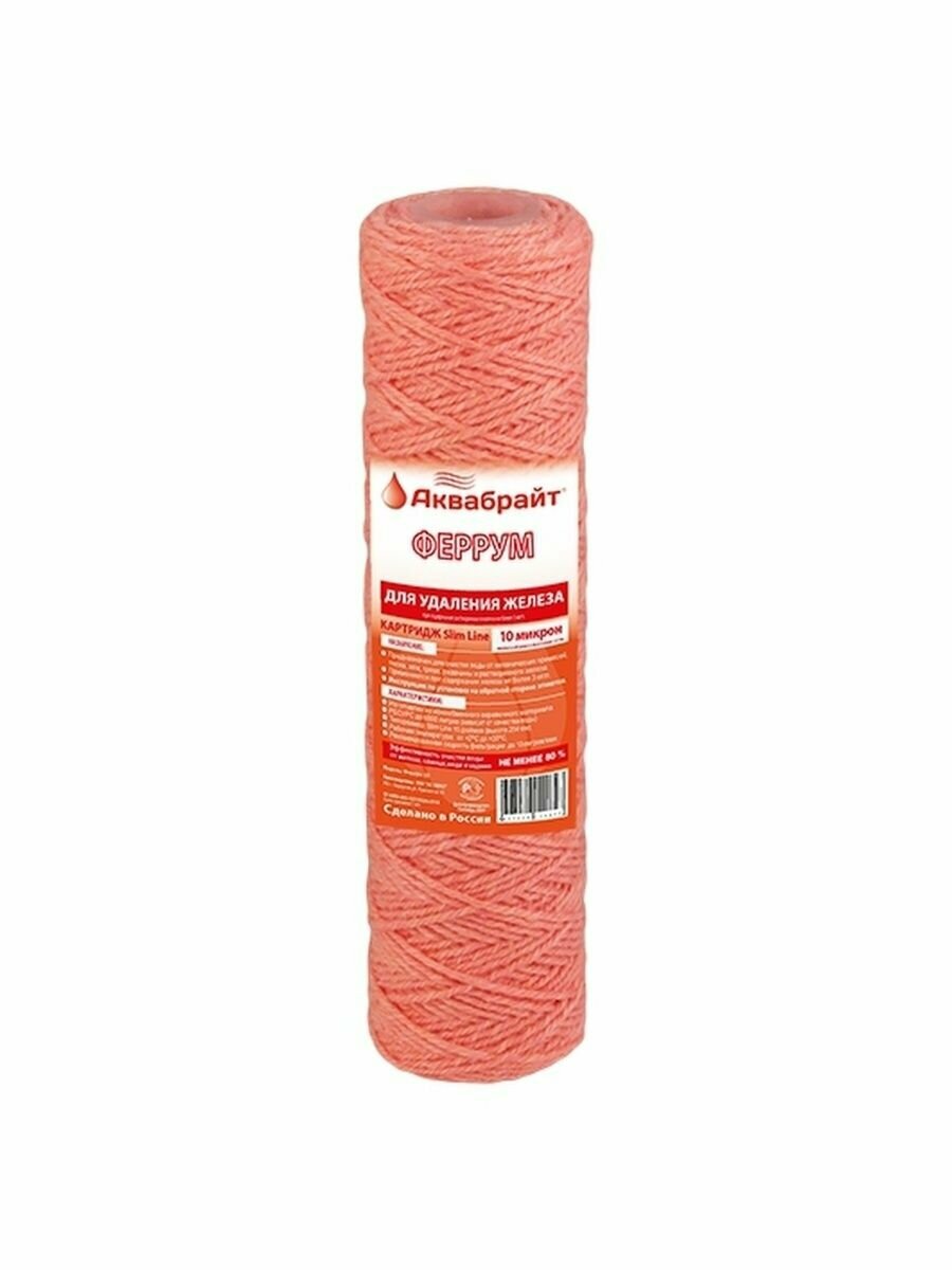 Аквабрайт картридж из полипропиленового шнура Феррум-10 для удаления железа Slim 10 10 мкр 33615 .