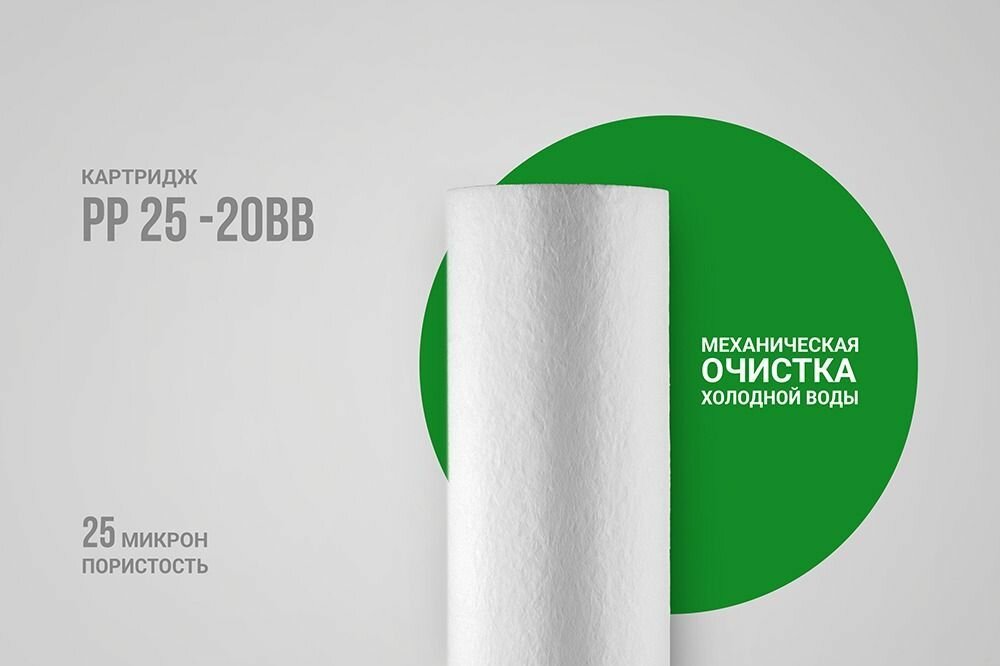 Картридж механический Гейзер PP 25 - 20 ВВ, ресурс 800 000 л, для холодной воды, очистка воды от ржавчины, грязи, песка и других примесей, 28209