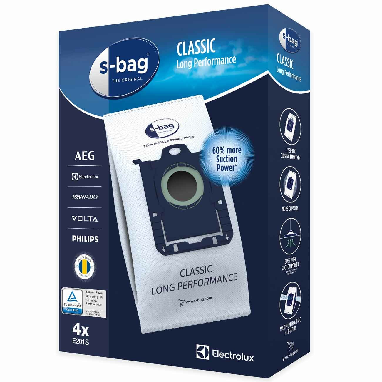 Мешки для пылесосов Philips и Electrolux E201S S-Bag Classic Long Performance, 4 шт