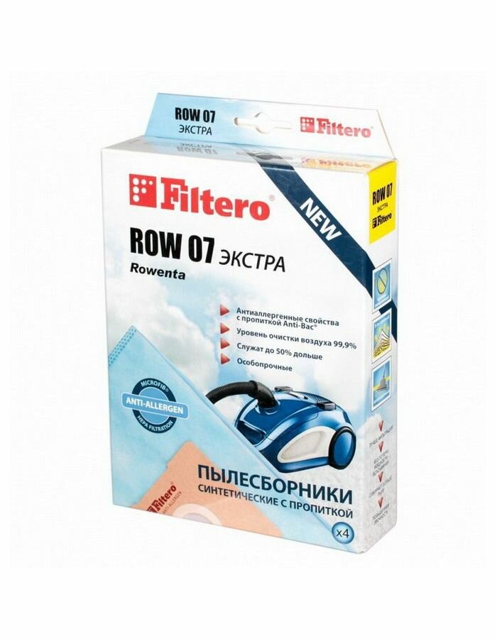 Filtero ROW 07 экстра, Мешки - пылесборники синтетические для пылесосов ROWENTA (комплект: 4 штуки)