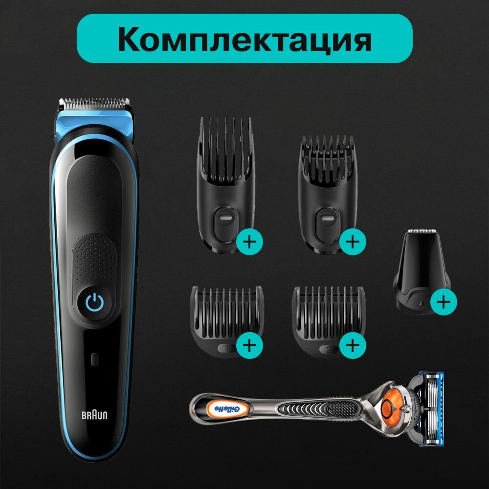 Универсальный триммер для бороды и стрижки 7 в 1 Braun MGK3245 + станок Gillette Fusion5 ProGlide с технологией FlexBall